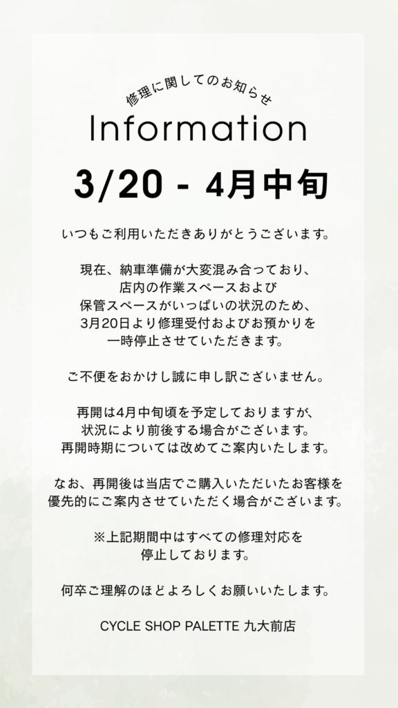 【3/20 修理に関してのお知らせ】