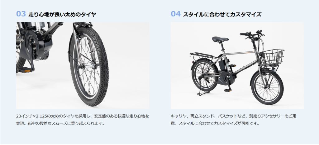 - 快適な走りをサポートする3段変速。平らな道、ちょっとした坂やキツイ坂など、道の状態に合わせて最適なギアを選べます。